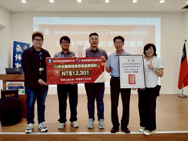 義賣結束後,屏科實中特別舉行公開儀式,將善款正式捐贈給華山基金會。活動中,外師 Teacher Jordan 引導孩子們討論並分享心得,讓他們明白——即使是一點點的付出,也能成為長者們心中的希望火苗。